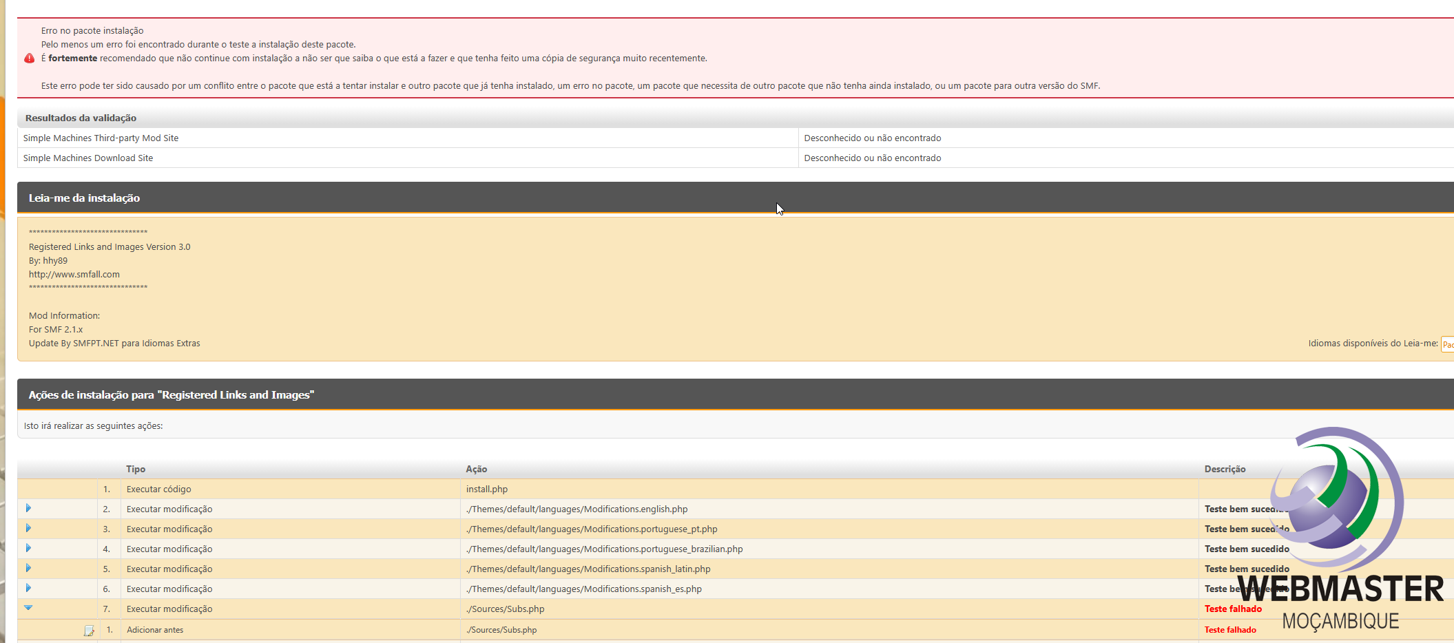 Se quiseres resolver já sem reinstalar o mod, abre o teu ficheiro Subs.php e vai até à linha 1582. Verás isto: